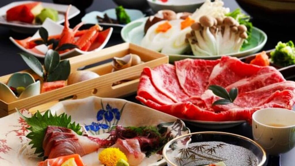 👉Wystawna kolacja kaiseki ryōri, pełna lokalnych specjałów.